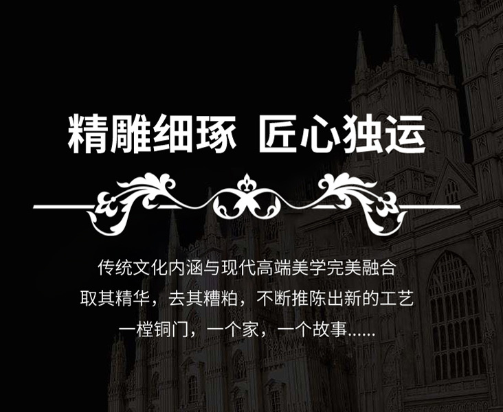 沈陽銅門制造公司擁有獨(dú)立、完整、雄厚的研發(fā)和生產(chǎn)能力,先進(jìn)齊全的銅門生產(chǎn)、加工設(shè)備,集材料、設(shè)計(jì)、生產(chǎn)、安裝、服務(wù)一體化。我們生產(chǎn)的系列豪華銅門:防盜、防火、防爆、靜音、環(huán)保,選用99.99%高純度的專用銅門材料,內(nèi)襯優(yōu)質(zhì)鍍鋅鋼管焊接的網(wǎng)狀骨架,兩面覆蓋高強(qiáng)度鍍鋅鋼板,外表處理采用進(jìn)口材料與先進(jìn)工藝,使其著色自然、光亮、恒久,在豪華氣質(zhì)之上更添光彩。我們以精湛的工藝、完善的售后服務(wù)體系,獲得了客戶的一致好評(píng)。